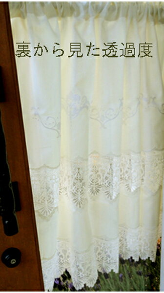 45cm丈には、同系色のローズ刺繍 75cm丈は、刺繍に2段レースで さりげなく存在感の有るカフェカーテンです。